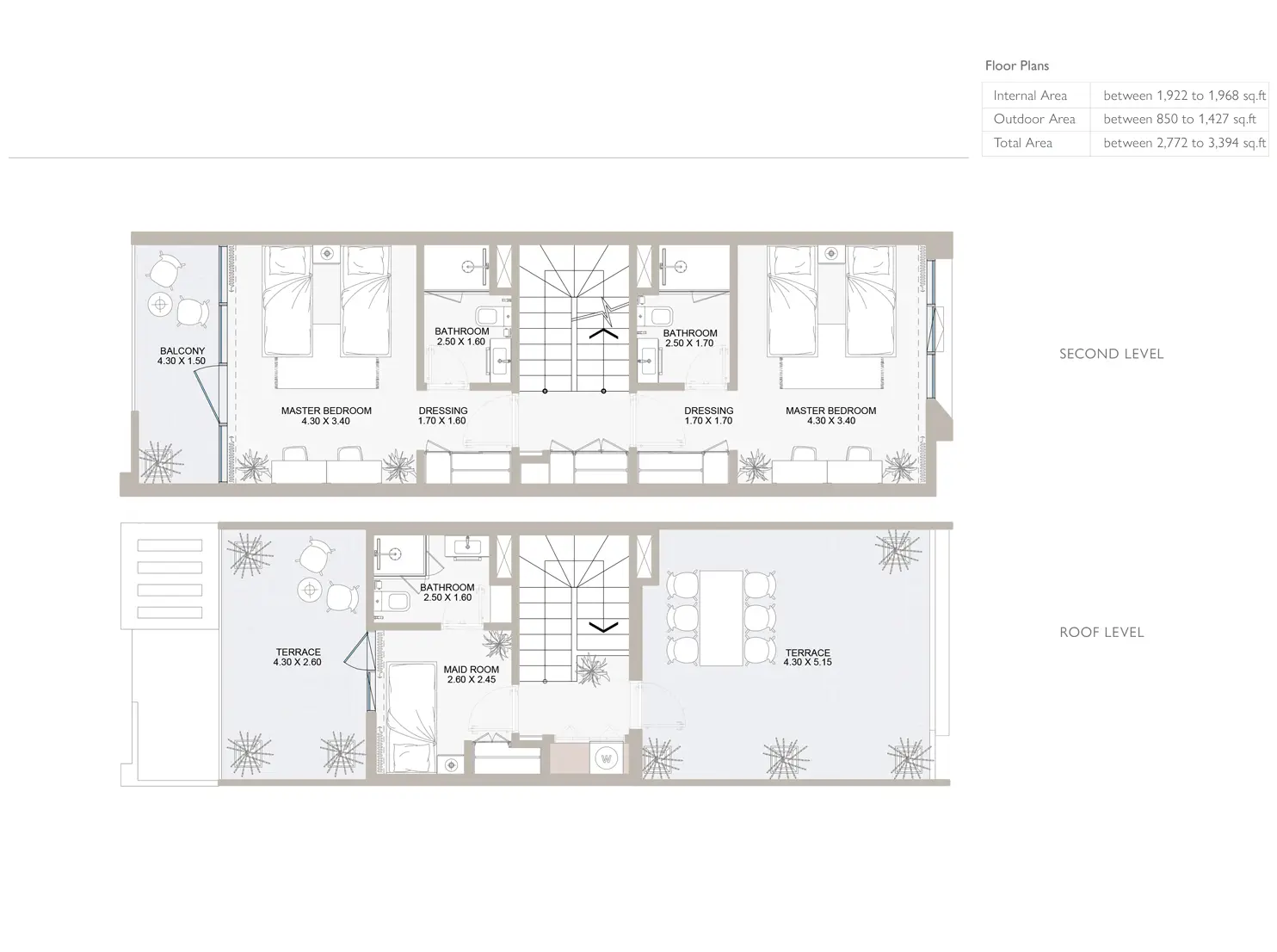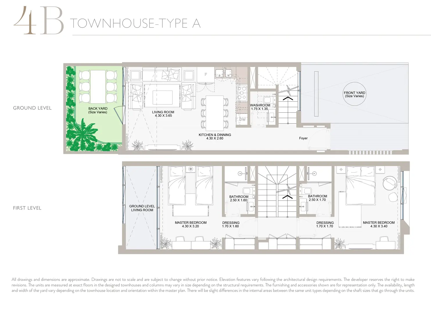 The development presents flexible townhouse options for a range of lifestyles. Type A townhouses have a ground and first level perfect for families. The Type B townhouse features an internal elevator for ultimate convenience, with an another option of extra storage space to meet practical needs. It combines modern design with the tranquillity of nature and offers large, relaxed homes to families looking for a high-end contemporary style. The earth tones and hints of wood, give a harmonious and timeless atmosphere.